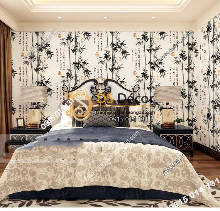 Giấy Dán Tường Tre Xanh Thư Pháp Cổ 3D174